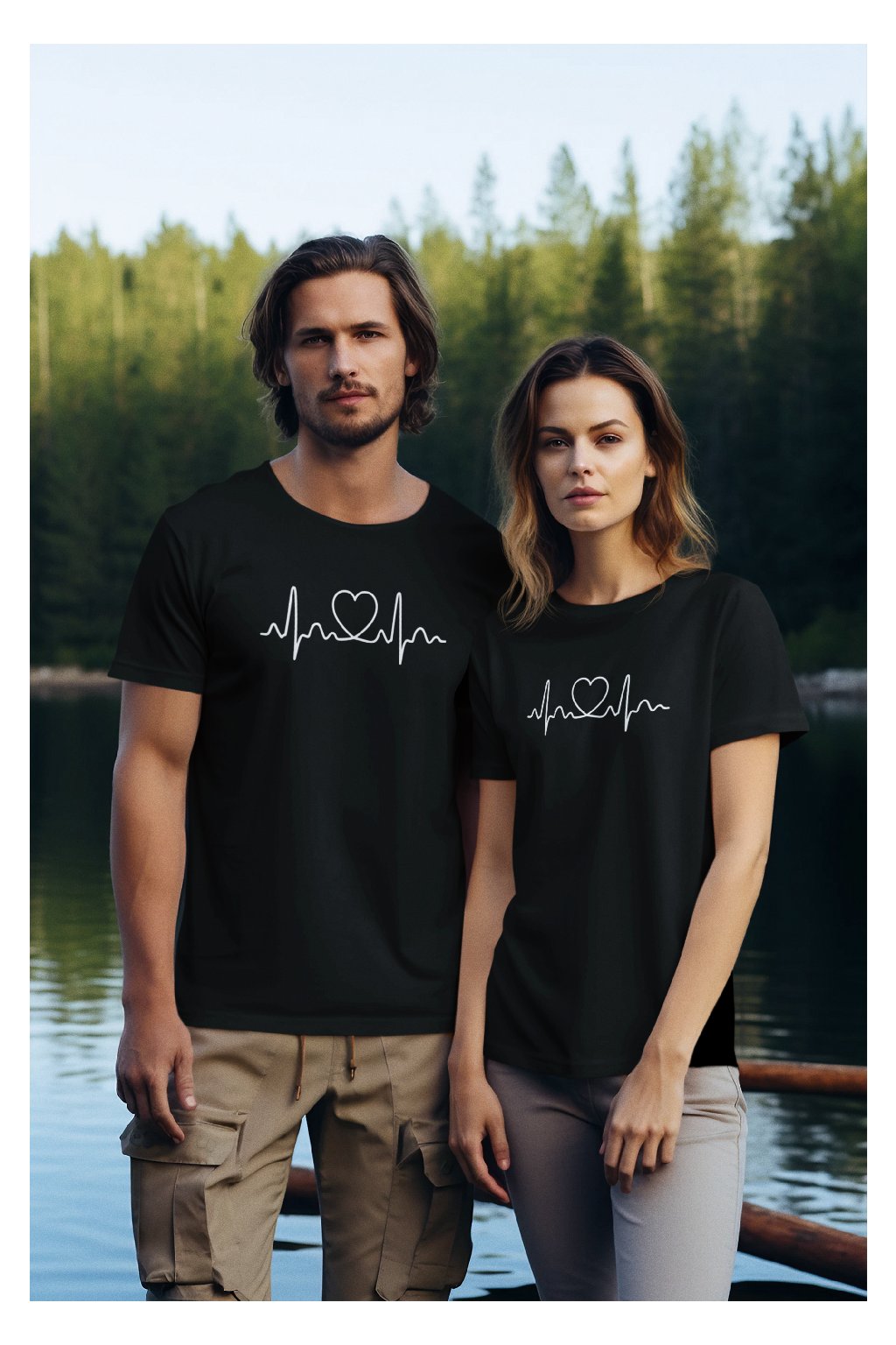 Set párové tričká s potlačou EKG srdce
