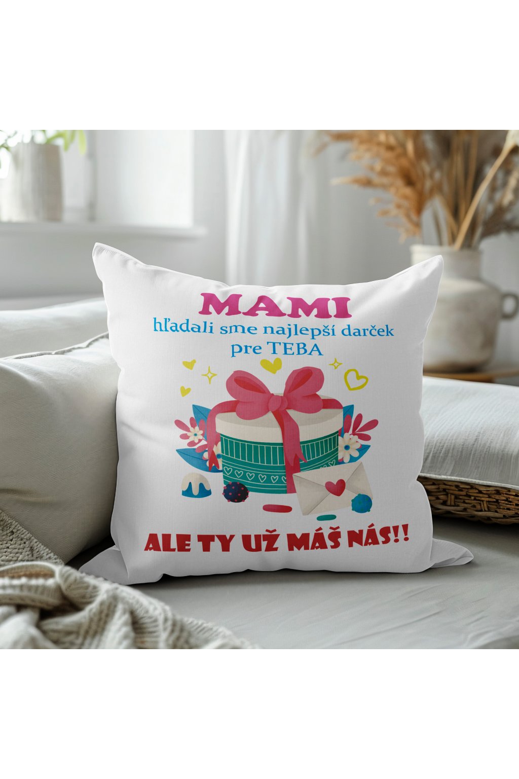 Vankúš s potlačou Mami hľadali sme najlepší darček